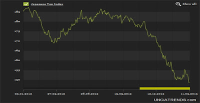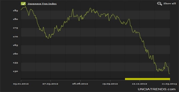 In addition to that, the trade weighted index of the Japanese Yen has also fallen drastically show means that Yen have also depreciated sharply against other currencies (Source: unciatrends.com):