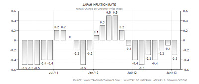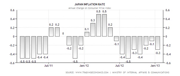 However Japan faced a deflation form June 2012 to January 2013 (Source: tradingeconomics.com):